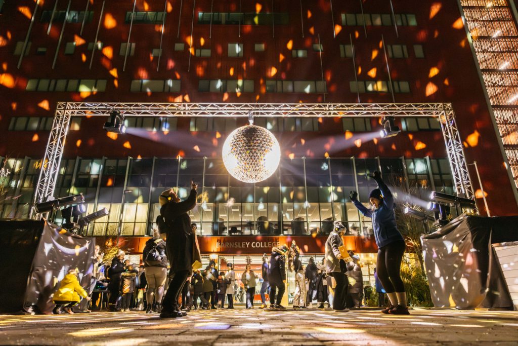 One of the standout moments of Illuminate Light Night 2026 will be Happy as the Day is Long – a bold, larger-than-life mirrorball installation transforming Library Gardens into an immersive world of light and reflection.